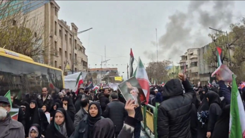 Kudüs Günü Yürüyüşü'nde Tahran halkı, kentin önemli caddelerinde toplanarak İran bayraklarıyla Tahran Üniversitesi'ne doğru yürüyüş gerçekleştiriyor.
