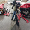 Savrulan servis minibüsü, istinat duvarına çarparak durabildi. Araçların şoförleri ile servisteki 4 öğrenci olmak üzere toplam 6 kişi yaralandı. İhbarla bölgeye sağlık ve polis ekipleri sevk edildi.