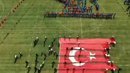 "23 Nisan Ulusal Egemenlik ve Çocuk Bayramı kutlamaları üzerinden sosyal medyada paylaşılan "Türk bayrağına saygısızlık yapıldığı" yönündeki iddialar tamamen asılsızdır. Kocaeli ili Körfez ilçesi Alparslan Türkeş Stadyumu’nda gerçekleştirilen kutlama programı kapsamında dev bir bayrak kareografisi gerçekleştirilmiştir.