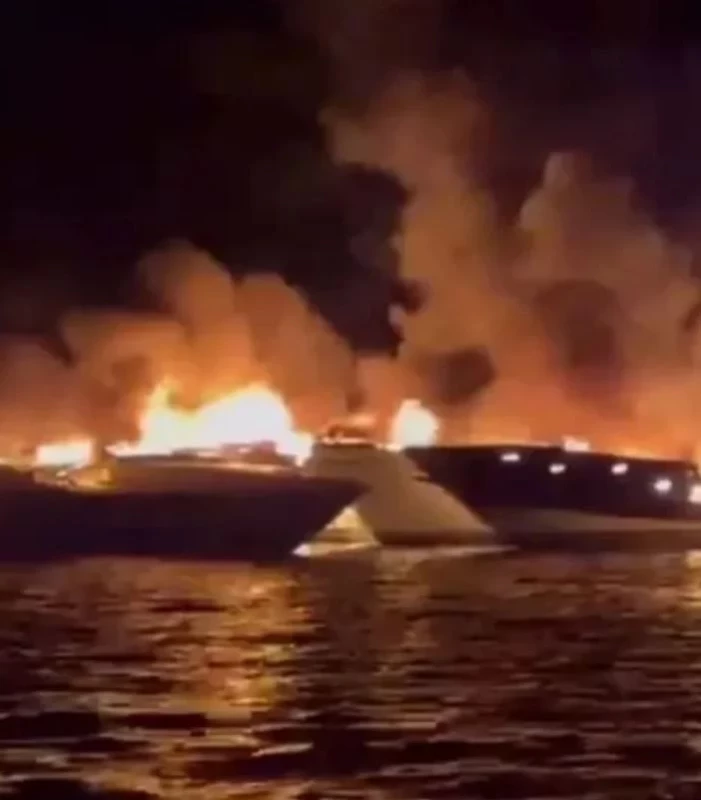 Gece yarısı lüks bir teknede henüz belirlenemeyen bir nedenle başlayan alevler, rüzgarın da etkisiyle yan yana demirli bulunan diğer motoryatlara sıçradı.