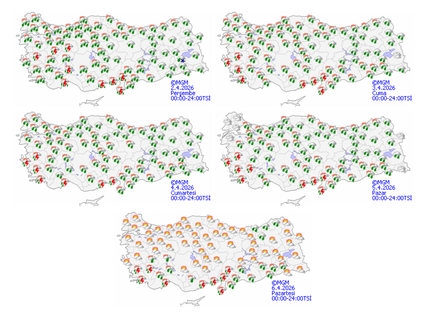 Meteoroloji Genel Müdürlüğü’nün son tahminlerine göre Türkiye genelinde çok bulutlu ve aralıklı yağışlı bir hava etkili olacak. Yağışların; Akdeniz, Batı Karadeniz ile birlikte Ankara, Sakarya, Kırıkkale, Çankırı, Adıyaman, Gaziantep, Kilis ve Şanlıurfa’nın batı kesimlerinde yerel olarak kuvvetli olması bekleniyor. Gece saatlerinden itibaren ise İzmir, Aydın ve Muğla çevrelerinde sağanak yağışın etkisini artıracağı tahmin ediliyor.